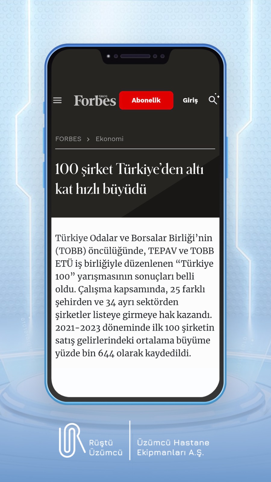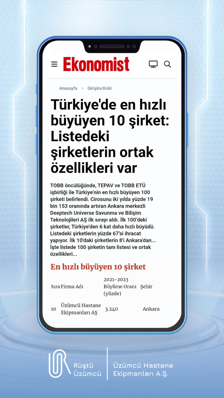 Üzümcü Hastane Ekipmanları A.Ş.: Türkiye’nin En Hızlı Büyüyen 10. Şirketi
